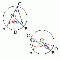 set_scale($scale = 10, $org_x_percent = 25, $org_y_percent = 70); $cent_x = 0; $cent_y = 0; $rad = 4; $ax = $cent_x + $rad * cos(deg2rad(180+45)); $ay = $cent_y + $rad * sin(deg2rad(180+45)); $bx = $cent_x + $rad * cos(deg2rad(360-45)); $by = $cent_y + $rad * sin(deg2rad(360-45)); $cx = $cent_x + $rad * cos(deg2rad(80)); $cy = $cent_y + $rad * sin(deg2rad(80)); $dx = $cent_x + $rad * cos(deg2rad(80+180)); $dy = $cent_y + $rad * sin(deg2rad(80+180)); $ex = ($ax + $dx) / 2; $ey = ($ay + $dy) / 2; $fx = ($bx + $dx) / 2; $fy = ($by + $dy) / 2; allocate_color('red'); draw_dash_line($cx, $cy, $dx, $dy); draw_corner_mark($cx, $cy, $ax, $ay, $cent_x, $cent_y, CMARK_DOT, $text = '', $italic = true, $text_ops = '', $italic_ops = false, $r = 10); draw_corner_mark($ax, $ay, $cent_x, $cent_y, $cx, $cy, CMARK_DOT, $text = '', $italic = true, $text_ops = '', $italic_ops = false, $r = 10); draw_corner_mark($cent_x, $cent_y, $ax, $ay, $ex, $ey, CMARK_DOT, $text = '', $italic = true, $text_ops = '', $italic_ops = false, $r = 10); draw_corner_mark($cent_x, $cent_y, $ex, $ey, $dx, $dy, CMARK_DOT, $text = '', $italic = true, $text_ops = '', $italic_ops = false, $r = 10); allocate_color('blue'); draw_corner_mark($cx, $cy, $cent_x, $cent_y, $bx, $by, CMARK_CIRCLE, $text = '', $italic = true, $text_ops = '', $italic_ops = false, $r = 10); draw_corner_mark($bx, $by, $cx, $cy, $cent_x, $cent_y, CMARK_CIRCLE, $text = '', $italic = true, $text_ops = '', $italic_ops = false, $r = 10); draw_corner_mark($cent_x, $cent_y, $dx, $dy, $fx, $fy, CMARK_CIRCLE, $text = '', $italic = true, $text_ops = '', $italic_ops = false, $r = 10); draw_corner_mark($cent_x, $cent_y, $fx, $fy, $bx, $by, CMARK_CIRCLE, $text = '', $italic = true, $text_ops = '', $italic_ops = false, $r = 10); allocate_color('green'); draw_line($cent_x, $cent_y, $ax, $ay); draw_line($cent_x, $cent_y, $bx, $by); allocate_color('black'); draw_circle($cent_x, $cent_y, $rad); draw_line($ax, $ay, $cx, $cy); draw_line($bx, $by, $cx, $cy); set_text_size($text_size = 12); allocate_text_color('black'); set_text_margin($text_margin = 3); draw_text('A', $ax, $ay, $o_pos = O_POS_UP_RIGHT); draw_text('B', $bx, $by, $o_pos = O_POS_UP_LEFT); draw_text('C', $cx, $cy, $o_pos = O_POS_LOW_LEFT); draw_text('D', $dx, $dy, $o_pos = O_POS_UP_LEFT); draw_text('O', $cent_x, $cent_y, $o_pos = O_POS_LOW_RIGHT); set_scale($scale = 10, $org_x_percent = 70, $org_y_percent = 30); $cent_x = 0; $cent_y = 0; $rad = 4; $ax = $cent_x + $rad * cos(deg2rad(180+45)); $ay = $cent_y + $rad * sin(deg2rad(180+45)); $bx = $cent_x + $rad * cos(deg2rad(360-45)); $by = $cent_y + $rad * sin(deg2rad(360-45)); $cx = $cent_x + $rad * cos(deg2rad(180 - 20)); $cy = $cent_y + $rad * sin(deg2rad(180 - 20)); $dx = $cent_x + $rad * cos(deg2rad(180 - 20+180)); $dy = $cent_y + $rad * sin(deg2rad(180 - 20+180)); $ex = ($ax + $dx) / 2; $ey = ($ay + $dy) / 2; $fx = ($bx + $dx) / 2; $fy = ($by + $dy) / 2; allocate_color('red'); draw_dash_line($cx, $cy, $dx, $dy); draw_corner_mark($cx, $cy, $ax, $ay, $cent_x, $cent_y, CMARK_DOT, $text = '', $italic = true, $text_ops = '', $italic_ops = false, $r = 10); draw_corner_mark($ax, $ay, $cent_x, $cent_y, $cx, $cy, CMARK_DOT, $text = '', $italic = true, $text_ops = '', $italic_ops = false, $r = 10); draw_corner_mark($cent_x, $cent_y, $ax, $ay, $ex, $ey, CMARK_DOT, $text = '', $italic = true, $text_ops = '', $italic_ops = false, $r = 10); draw_corner_mark($cent_x, $cent_y, $ex, $ey, $dx, $dy, CMARK_DOT, $text = '', $italic = true, $text_ops = '', $italic_ops = false, $r = 10); allocate_color('blue'); draw_corner_mark($cx, $cy, $cent_x, $cent_y, $bx, $by, CMARK_CIRCLE, $text = '', $italic = true, $text_ops = '', $italic_ops = false, $r = 10); draw_corner_mark($bx, $by, $cx, $cy, $cent_x, $cent_y, CMARK_CIRCLE, $text = '', $italic = true, $text_ops = '', $italic_ops = false, $r = 10); draw_corner_mark($cent_x, $cent_y, $dx, $dy, $fx, $fy, CMARK_CIRCLE, $text = '', $italic = true, $text_ops = '', $italic_ops = false, $r = 10); draw_corner_mark($cent_x, $cent_y, $fx, $fy, $bx, $by, CMARK_CIRCLE, $text = '', $italic = true, $text_ops = '', $italic_ops = false, $r = 10); allocate_color('green'); draw_line($cent_x, $cent_y, $ax, $ay); draw_line($cent_x, $cent_y, $bx, $by); allocate_color('black'); draw_circle($cent_x, $cent_y, $rad); draw_line($ax, $ay, $cx, $cy); draw_line($bx, $by, $cx, $cy); set_text_size($text_size = 12); allocate_text_color('black'); set_text_margin($text_margin = 3); draw_text('A', $ax, $ay, $o_pos = O_POS_UP_RIGHT); draw_text('B', $bx, $by, $o_pos = O_POS_UP_LEFT); draw_text('C', $cx, $cy, $o_pos = O_POS_LOW_RIGHT); draw_text('D', $dx, $dy, $o_pos = O_POS_UP_LEFT); draw_text('O', $cent_x, $cent_y, $o_pos = O_POS_LOW_CENTER);